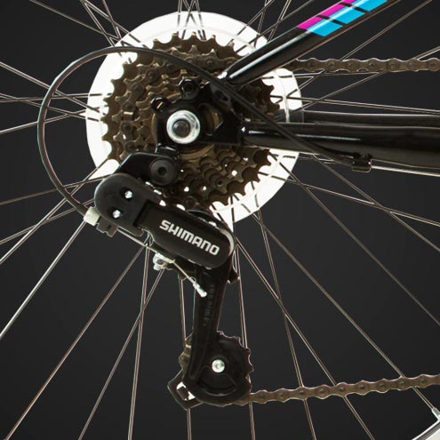 A E-Slap é equipada com o motor Shimano EP8 e a bateria Shimano Steps 630W, totalmente integrados ao quadro, fornecem 250W de potência, 85 Nm de torque, com uma assistência de 32 km.