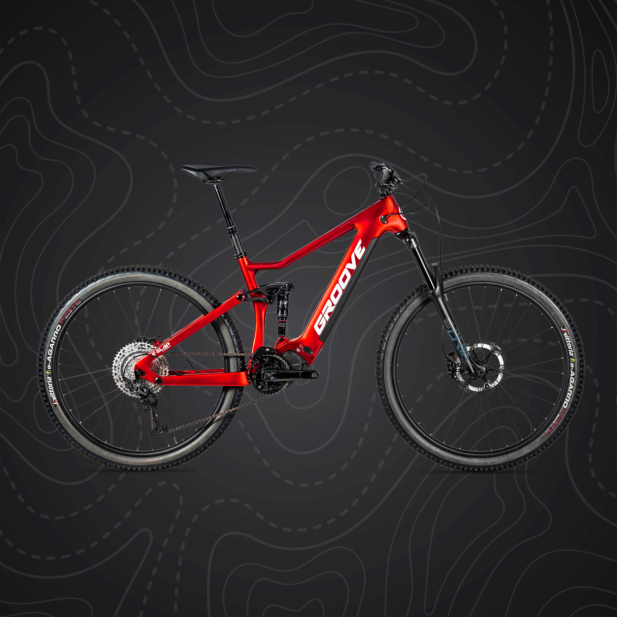 A E-Slap é totalmente voltada para a prática do e-MTB XC, contando com quadro Carbon Boost, suspensão e shock RockShox (Lyrik Select e Deluxe Ultimate Debonair, respectivamente), Câmbio Shimano Deore 12v, freios SLX 4-Piston, pneus Vittoria e-Agarro e canote retrátil X-Fusion Manic.