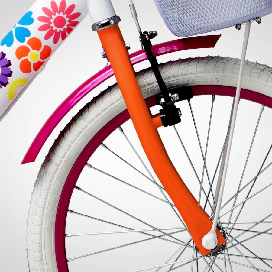 A My Bike aro 20 tem design exclusivo do quadro, tubo central em forma de arco permite que a criança suba e desça da bike com facilidade. As rodas da My Bike são um diferencial. Feitas em alumínio, elas são mais duráveis que modelos comuns e não deformam com o calor. Ideal para meninas de 06 a 08 anos ou estatura entre 1,20 e 1,35 mts. Nas cores Branca ou Laranja.